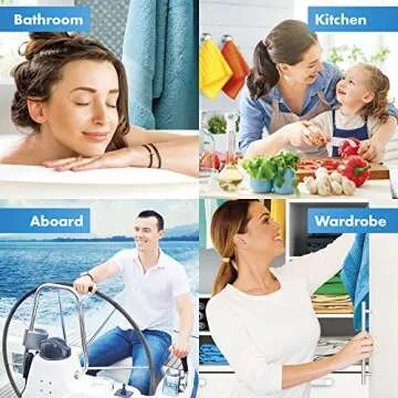 RICHYN Kitchen Towel Hooks Blue – Set of 2 self Adhesive Towel Hook – Premium Chrome Finish & Easy Installation – Firmly Holds Towel Without Tearing – Ideal as Bathroom, Outdoor Towel Holders