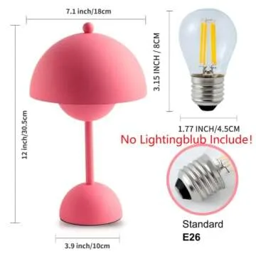 Rickaron Mushroom Table Lamp Set of 2 12” Pink Mushroom Touch Control Desk Lamp Bedside Small Lovly Flower Bud Design Modern Night Light *No Lightbulb Included*