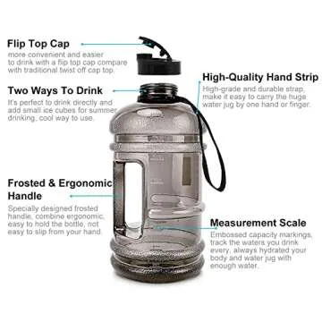 RICWINANN Water Jug 2.2L Large Sport Water Bottle Big Capacity Leakproof Container BPA Free Plastic with Carrying Loop Fitness for Camping Training Bicycle Hiking Gym Outdoor (Black)