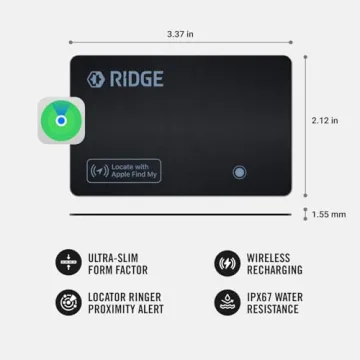 Show more The Ridge Wallet Tracker Card is the ultimate solution for anyone who has ever misplaced their wallet or needs peace of mind while traveling. This Tile Slim Tracking Card integrates seamlessly with the Apple Find My network, allowing you to track your wallet in real-time right from your iPhone. With its sleek design, it fits snugly under your Cash Strap or Money Clip, ensuring it remains discreet while still providing unbeatable tracking capabilities. Whether you're at home or on the go, you can trigger alerts and enable Lost Mode instantly if your wallet goes missing. This tracker is designed specifically for those who own Apple devices equipped with the Find My feature, making it the perfect companion for your valuable belongings.