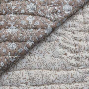 Ridhi Block Print Quilted Taupe Color Throw Reversible Blanket 100% Cotton Quilt, Cover for Couch and Bed, Sage Lap Bedding Coverlet, Luxury Oversized Quilted Throw Twin 60" X 90"