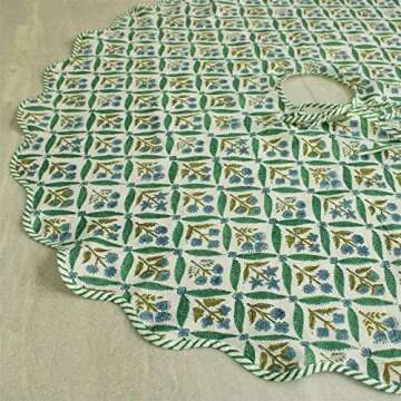 Ridhi Christmas Tree Skirt Floral Block Print Nature Color Christmas Tree Skirt in Cotton, Decoration for Xmas Home Holiday Seasonal Decors (Sea Green, 70 Inch or 177.8 cms)