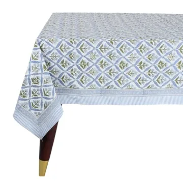 Show more Elevate your dining experience with the Ridhi Steel Blue 70x108 Inches Rectangle Tablecloth, a stunning addition to your home decor crafted from 100% premium cotton. Designed for style and functionality, this tablecloth effortlessly blends elegance and comfort, making every meal feel special. Its generous size fits most tables, and the choice of colors not only enhances the aesthetic but also brings vibrancy to your dining settings. The meticulous hand block print adds a unique touch, ensuring that no two pieces are alike while also reflecting high-quality craftsmanship.