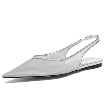 Riekhany Mesh Flats for Women Pointed Toe Slingback Flats Slip On Casual Work Ballet Flats Silver