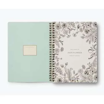 RIFLE PAPER CO. 2024 Flores 12-Month Softcover Spiral Planner - January-December, Sections for Monthly Views, Contacts, Celebrations, and Pockets Storage, (RP-PLC008)