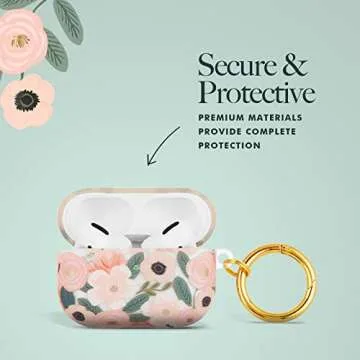 Rifle Paper Co. Airpods Pro Case Cover with Keychain [Wireless Charging Compatible] [Visible LED] Cute Case for Apple AirPods Pro with Floral Design, Anti Scratch, Slim, Shockproof - Wild Flowers