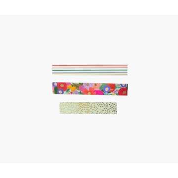RIFLE PAPER CO. Garden Party Paper Tape, 393" L x 0.62" W, Set of 3 Coordinating Patterns, Adhesive Paper Tape, Printed in Full Color, Add Decorative Accents to Gift Wrap