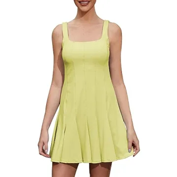 Rigolla Womens Workout Tennis Dress with Built in Shorts and Bra Athletic Golf Activewear Green L
