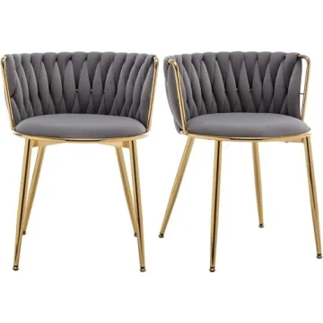 Show moreElevate your dining experience with the stunning Riknuxi Velvet Dining Chairs Set. This exquisite pair of modern dining chairs features a unique woven backrest that not only adds an artistic flair to your dining area but is also designed for supreme comfort. Wrapped in soft velvet fabric and supported by a chic, gold-plated metal frame, these chairs are the perfect blend of elegance and functionality. Crafted by a reputable brand known for its quality and style, these chairs ensure that your dining occasions are both stylish and comfortable.