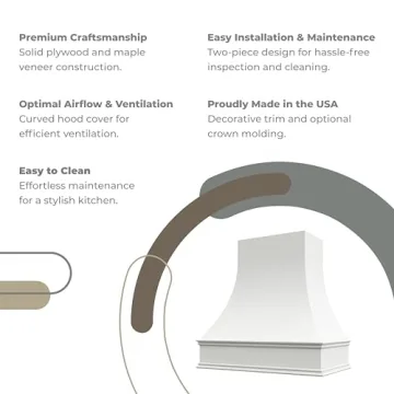 Show more Transform your kitchen into a stylish sanctuary with the Riley & Higgs Curved Front Unfinished Range Hood Cover. This masterpiece is crafted from the highest quality solid plywood and maple veneer, designed not only for durability but for an aesthetic that meshes both luxury and sophistication. With dimensions of 37.5 W X 48 H inches, this wall-mounted wood range hood cover is tailored to fit seamlessly into any kitchen setting, from cozy farmhouse to sleek modern designs. Its decorative strapping and crown molding add a lavish finish that enhances the visual appeal of your cooking space.
