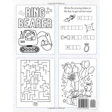 The book includes coloring pages, puzzles, and games that are all wedding-themed and enjoyable for young children.