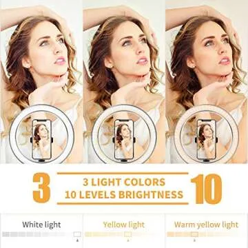 Ring Light with Stand OEBLD Selfie Light Ring with iPhone Tripod and Phone Holder for Video Photography Makeup Live Streaming YouTube Lighting (C(10.2''Ring Light & 63''Tripod))…