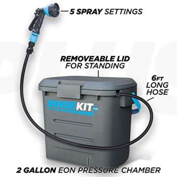 RinseKit Plus | Portable Shower with Hand Pump | 1.8 Gallons of Hot or Cold Water | Great for Camping, Surfing, Pets, Sports