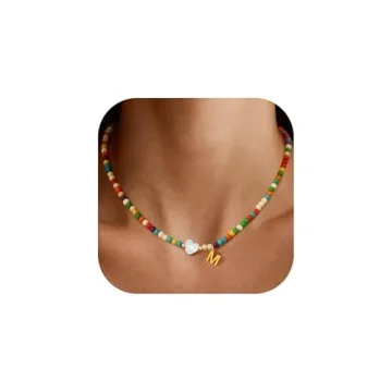 Unlike many other jewelry pieces on the market, the **RINTOLER Gold Initial Necklace** not only offers **personalized initials** but also integrates unique elements such as **colorful beads and natural shells**. While competitors may provide basic initial necklaces, this piece stands out due to its combination of vibrant aesthetics and meaningful personalization. The high-quality materials used ensure durability and skin safety, giving it an edge over mass-produced alternatives.