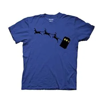 Show moreIntroducing the officially licensed Ripple Junction Doctor Who Tardis and Reindeer Adult T-Shirt, a unique apparel item that perfectly blends festive cheer with your love for the iconic sci-fi series. Crafted with the utmost care, this high-quality t-shirt features a playful design of the Doctor Who Tardis surrounded by whimsical reindeer. Made from soft, breathable fabric, this t-shirt ensures comfort whether you’re attending a holiday party or lounging at home while watching your favorite episodes. Available in a stunning royal blue color, this shirt not only stands out but also makes a statement which any Doctor Who fan will appreciate passionately.