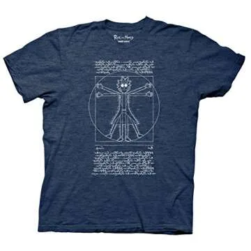 Ripple Junction Rick and Morty Vitruvian Rick T-Shirt, Navy Heather, X-Large