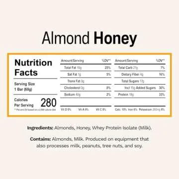 Rise Breakfast Whey Protein Bars Almond Honey, 18g Protein, 2.01 oz (12 Pack)