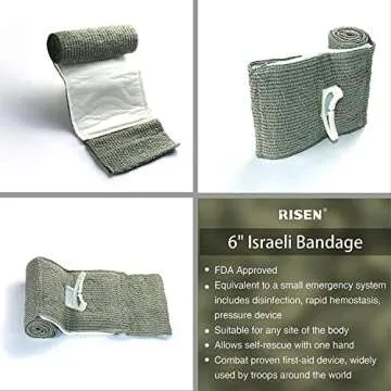 RISEN Israeli Bandage Vacuum Sterile Compression Bandages for First Aid Emergency Battle Wound Dressing Self-Rescue, 6 Inch, 1 Pack