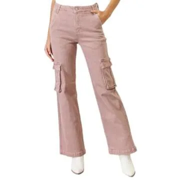 Introducing the Risen Women's High Rise Cargo Wide Leg Jeans, designed for the modern woman who desires both style and comfort in her everyday wardrobe. Crafted from high-quality fabric with a beautiful mauve hue, these jeans are made to accentuate your silhouette, providing a flattering fit that enhances your shape while ensuring all-day comfort. The high-rise design offers a chic look, making these jeans perfect for a casual brunch or a night out on the town.