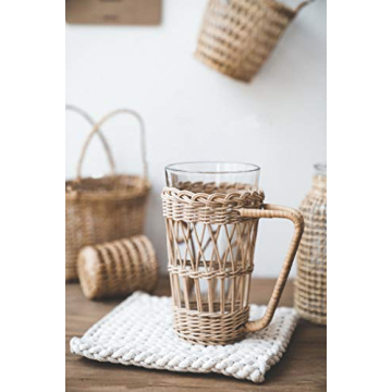 Show moreIntroducing the RISEON Vintage Rustic Hand-Woven Bamboo Rattan Cup Holder, a stunning blend of functionality and aesthetic appeal for your home decor. Crafted from 100% natural rattan bamboo, this unique cup holder features a clear glass cup that complements its rustic design. Standing at an overall height of 18cm with a mouth diameter of 9cm, this piece not only acts as a practical drink holder but also serves as an eye-catching art piece. Whether you're sipping your morning coffee or enjoying a refreshing iced tea, this handmade cup holder enhances the experience while adding a touch of boho charm to your kitchen or dining area.