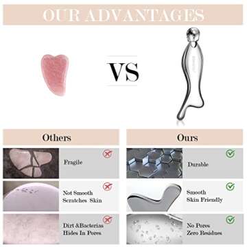 RISSING 4-in-1 Gua Sha Facial Tools: FSA/HSA Eligible, Lymphatic Drainage Massager Facial Roller for Wrinkles and Lifting, Stainless Steel Gua Sha Tool for Face (Portable Box Edition)