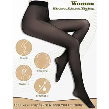 Show moreExperience the ultimate in comfort and versatility with the Ritatte Thick Fleece Lined Tights for Women. Designed to keep you warm while offering a sheer, stylish look, these tights are perfect for layering under skirts, dresses, or even shorts. The unique faux warm technology combined with a soft fleece lining ensures that you stay cozy during colder months without compromising on style. The stretchy high waist provides a snug fit and enhances your silhouette, letting you feel confident all day long. Crafted from high-quality materials, these black pantyhose are not just durable but also easy to care for, making them a must-have in your wardrobe.