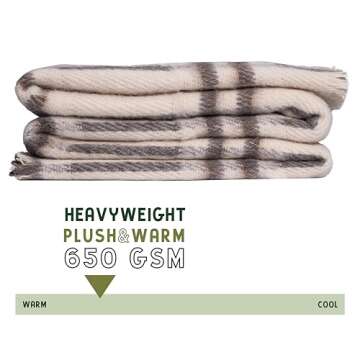 Ritzy Juniper Heavyweight, Unbleached Wool Blanket - Natural Cream and Brown Plaid, 60 x 80 Inches