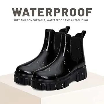 Show more Discover the ultimate solution for rainy days with these stylish and functional boots. Made with excellent environmental protection PVC upper material, these rain boots are not only durable but also water-resistant. Featuring a plush textile and cotton lining, they guarantee comfort and breathability, ensuring your feet stay soft and protected from blisters and chafing during wet weather.