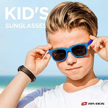 RIVBOS Kids Sunglasses Polarized UV Protection Flexible Rubber Glasses Shades with Strap for Boys Girls Age 3-10 RBK004-2 Blue&Blue