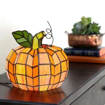 River of Goods - Pumpkin - 9" H - Stained Glass Lamp - Unique Lamps - Tiffany Lamp Style