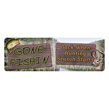 River's Edge Gone Fishing, Back When Hunting Season Starts Tin Sign
