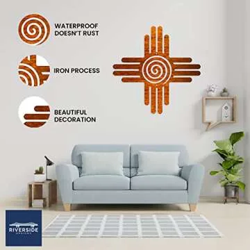 Show moreIntroducing the stunning Riverside Designs Zia Sun Metal Wall Art, a centerpiece that beautifully captures the spirit of the Southwest. Crafted with precision in the USA, this exquisite 12-inch Copper Zia Sun is designed to brighten your indoor or outdoor spaces. Made from high-quality steel and clear coated for weather-proof durability, this artwork is perfect for any environment, from vibrant gardens to cozy living rooms. Its intricate design and rich copper finish infuse warmth and culture into your decor, making it not just a decoration, but a statement piece.