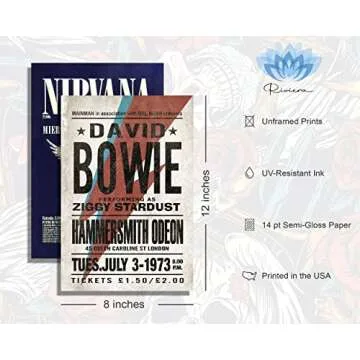 Riviera Vintage Rock Band Posters for Room Aesthetic, 70s, 80s, 90s, Retro Bedroom Decor Wall Art, Concert Poster Collage, Old Music Album Cover Prints, Nirvana Music Posters