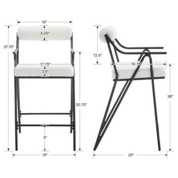 Show moreElevate your dining or kitchen experience with the RIVOVA 26" White Bar Stools Set of 4, designed for modern living and unparalleled comfort. Crafted with a sleek, mid-century modern aesthetic, these counter height bar stools feature a luxurious sherpa fabric upholstery that not only provides an elegant look but also offers incredible comfort. Each stool stands at 37.75 inches in total height, perfectly suited for kitchen islands and counters measuring between 35 to 39 inches in height. The sturdy metal legs in a chic gloss black finish, combined with a durable N-shaped construction, ensure each stool can support up to 300 lbs, making them ideal for family gatherings or entertaining friends.
