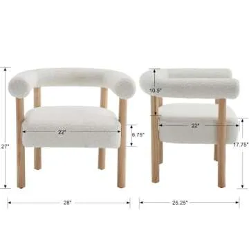 RIVOVA Barrel Accent Chair, Sherpa Upholstered Modern Armchair Accent Chair Comfy White Accent Chair with Curved Backrest and Wood Legs for Living Room, Bedroom, Office
