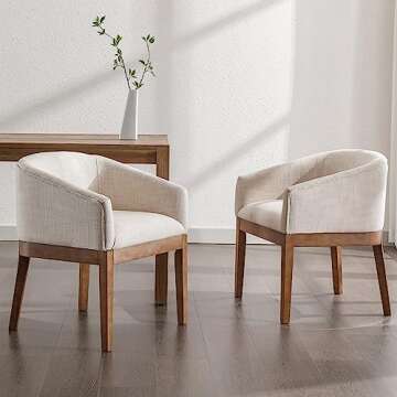 RIVOVA Beige Dining Chairs Set of 4 Mid-Century Modern Dining Chairs Linen Upholstered Kitchen Dining Room Chairs Curved Backrest Dining Chairs with Wood Leg