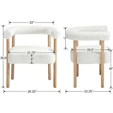 Show moreIntroducing the RIVOVA White Boucle Dining Chairs Set of 2, a perfect blend of style, comfort, and durability for your dining space. These modern upholstered dining chairs showcase a sophisticated design that enhances any room, from intimate kitchens to stylish restaurants. Crafted with plush faux sherpa fabric, each chair offers a uniquely luxurious seating experience, making every meal feel special. Featuring a chic curved backrest and natural wood legs, these chairs are not only visually appealing but also provide reliable support with a weight capacity of up to 250 lbs. The set includes two chairs, offering exceptional value in both aesthetics and functionality.