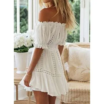 RIXDAS Women's Summer Two Piece Ruffle Trim Cami Hollow out Crop Top and Wrap Skirt Set