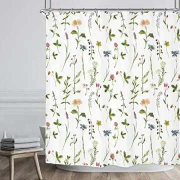 Riyidecor Botanical Shower Curtain for Bathdroom 72Wx72H Inch Watercolor Wildflower Shower Curtains Floral Leaves Plant Flower Girl Bathroom Accessories Women Fabric Waterproof 12 Plastic Shower Hooks