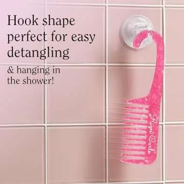 Rizos Curls Hanging Shower Comb, Detangle & Distribute Conditioner In Shower, Gentle On All Curl Types, Easy to Hang & Use, Pink