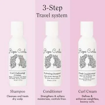 Rizos Curls Trio Travel Curl Kit, Includes Travel Hydrating Shampoo, Travel Deep Conditioner, Travel Curl Cream, Gently Cleanse, Hydrate and Style, For All Curl Patterns 2a - 4c, 3 pack of 2 oz