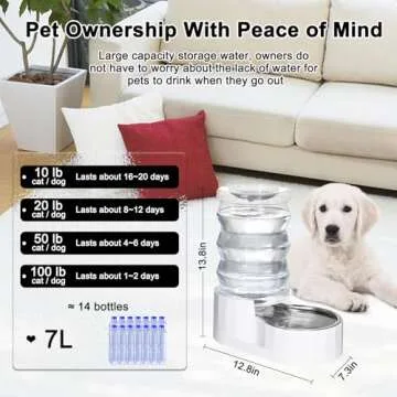 RIZZARI Automatic 7L Pet Waterer,Gravity Stainless Steel Water Dispenser, 100% BPA-Free, Large Capacity Water Feeder for Cats and Medium and Large-Sized Dogs (White,7L)