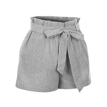 RK RUBY KARAT Womens Casual High Waisted Self Tie Striped Linen Summer Shorts