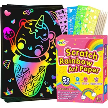 RMJOY Rainbow Scratch Off Paper Craft Set - 60PCS Magic Arts Supplies