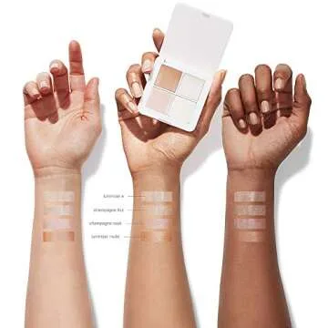 RMS Beauty Luminizer X Quad Highlighter - Creamy Light-Reflective Organic 4 Shade Face Makeup Palette for Dewy, Glowing & Nourished Skin - Luminizer X, Luminizer Nude, Champagne Rosé & Champagne Fizz