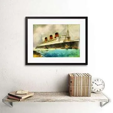 Rms Queen Mary Liner Cruise Ship Watercolour Black Framed Art Print B12X2457