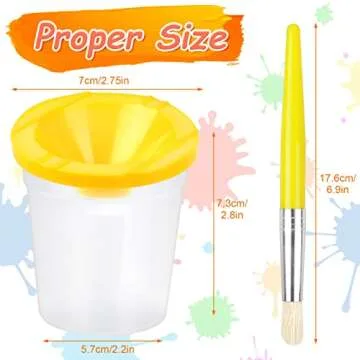 RNKP 4 Piece Children's No Spill Paint Cups with Colored Lids and 4 Piece Large Round Brush Set with Plastic Handles,Toddler Anti-Spill Paint Cup and Brush Set