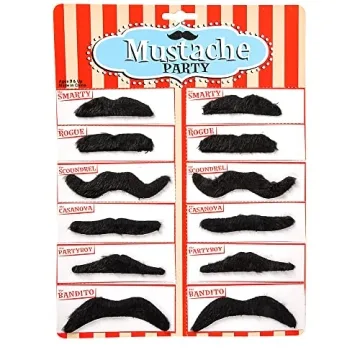 Each mustache is of a 3.5-inch size, making them suitable for various face shapes and sizes. The pack comes with 12 assorted mustaches, offering two of each style, so you have flexibility and backup for any costume faux pas. These mustaches are perfect not only for Halloween but also for themed parties or any playful outing. User reviews highlight their quality and ease of use, ensuring that they stay stuck, even through tugging little hands, for hours of enjoyment. Customers rave about their realistic appearance and the joy they bring to different gatherings.