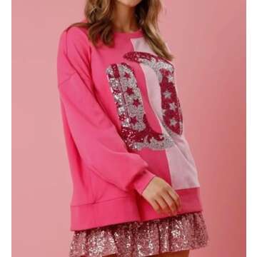 Why You Will Love This Product? Slip into this adorable sweatshirt, and you'll instantly feel a rush of joy and confidence. The warm, inviting heart print coupled with the sparkly sequins will surely brighten your mood and those around you. Imagine turning heads as you wear this stylish piece out on a date or during a fun outing with friends. Not only is this sweatshirt a fabulous addition to your wardrobe, but it also encapsulates the essence of love and celebration, making you feel connected to the joyous moments in life.