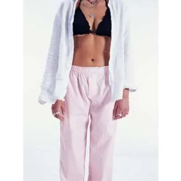 ROAONOCOMO Women Y2K Striped Lounge Pants Pinstriped Wide Leg Pajama Pants Gingham High Waist Relaxed Pants Going Out Pants